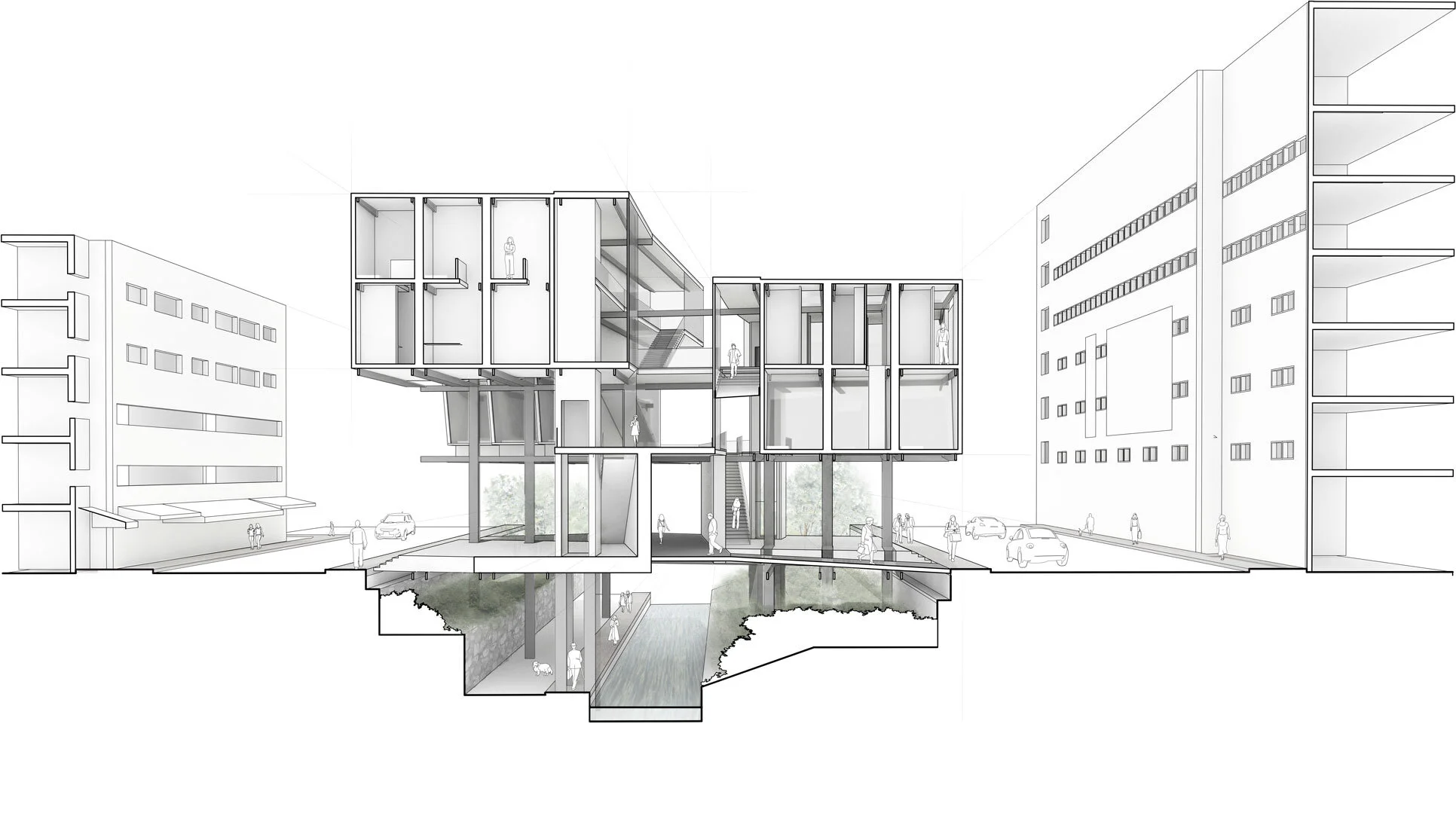 Conceptually, this housing project is based on providing entirely unique views to each unit while creating a new urban edge through the circulatory spaces throughout